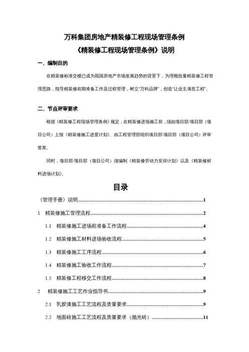 本站正式发布了《{企业管理制度}某地产集团房地产精装修工程现场管理条例》文档,文档详细内容可下载阅读。 声明:本站所有文章,如无特殊说明或标注,均为本站原创发布。任何个人或组织,在未征得本站同意时,禁止复制、盗用、采集、发布本站内容到任何网站、书籍等各类媒体平台。如若本站内容侵犯了原著者的合法权益,可联系我们进行处理。