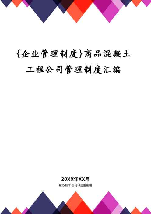 本站资深用户发布了最新的《{企业管理制度}商品混凝土工程公司管理制度汇编》文档,以下内容为预览,详细内容可下载阅读。 声明:本站所有文章,如无特殊说明或标注,均为本站原创发布。任何个人或组织,在未征得本站同意时,禁止复制、盗用、采集、发布本站内容到任何网站、书籍等各类媒体平台。如若本站内容侵犯了原著者的合法权益,可联系我们进行处理。