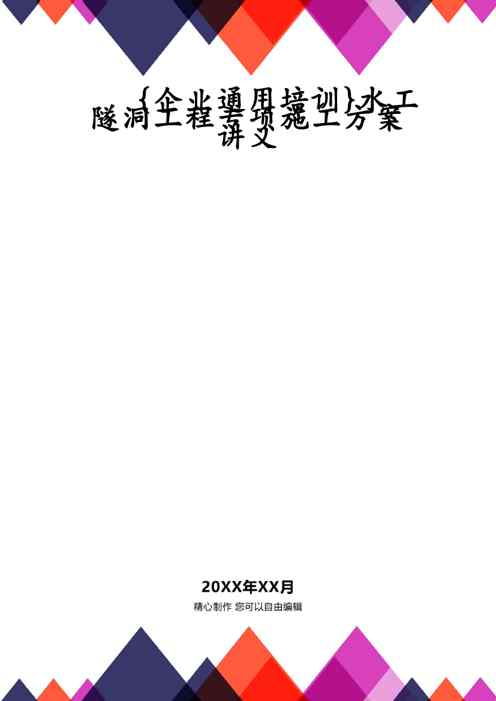 不久前,最新文档《{企业通用培训}水工隧洞工程专项施工方案讲义》全文正式在本站发布,感兴趣的用户可以下载阅读。 声明:本站所有文章,如无特殊说明或标注,均为本站原创发布。任何个人或组织,在未征得本站同意时,禁止复制、盗用、采集、发布本站内容到任何网站、书籍等各类媒体平台。如若本站内容侵犯了原著者的合法权益,可联系我们进行处理。