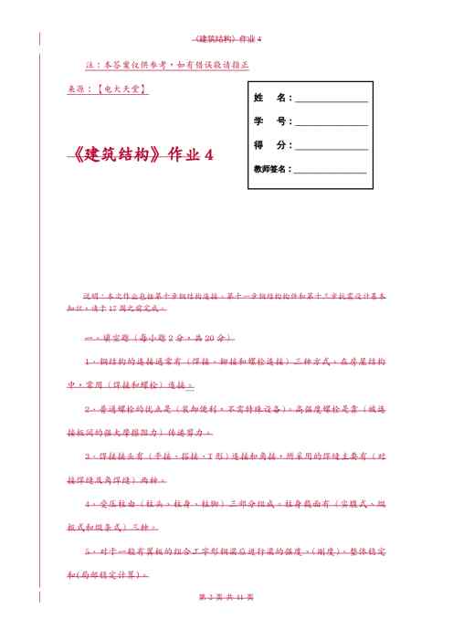 本站正式发布了《(绩效考核)建筑结构形成性考核册作业》文档,文档详细内容可下载阅读。 声明:本站所有文章,如无特殊说明或标注,均为本站原创发布。任何个人或组织,在未征得本站同意时,禁止复制、盗用、采集、发布本站内容到任何网站、书籍等各类媒体平台。如若本站内容侵犯了原著者的合法权益,可联系我们进行处理。