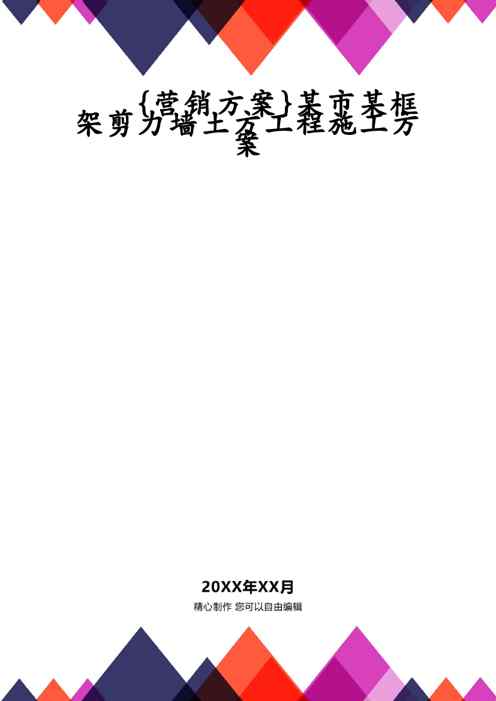 本站资深用户发布了最新的《{营销方案}某市某框架剪力墙土方工程施工方案》文档,以下内容为预览,详细内容可下载阅读。 声明:本站所有文章,如无特殊说明或标注,均为本站原创发布。任何个人或组织,在未征得本站同意时,禁止复制、盗用、采集、发布本站内容到任何网站、书籍等各类媒体平台。如若本站内容侵犯了原著者的合法权益,可联系我们进行处理。