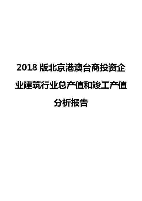 本站正式发布了《2018版北京港澳台商投资企业建筑行业总产值和竣工产值分析报告》文档,文档详细内容可下载阅读。 声明:本站所有文章,如无特殊说明或标注,均为本站原创发布。任何个人或组织,在未征得本站同意时,禁止复制、盗用、采集、发布本站内容到任何网站、书籍等各类媒体平台。如若本站内容侵犯了原著者的合法权益,可联系我们进行处理。