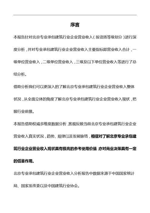 本站正式发布了《2018版北京专业承包建筑行业企业营业收入(按资质等级划分)分析报告》文档,文档详细内容可下载阅读。 声明:本站所有文章,如无特殊说明或标注,均为本站原创发布。任何个人或组织,在未征得本站同意时,禁止复制、盗用、采集、发布本站内容到任何网站、书籍等各类媒体平台。如若本站内容侵犯了原著者的合法权益,可联系我们进行处理。