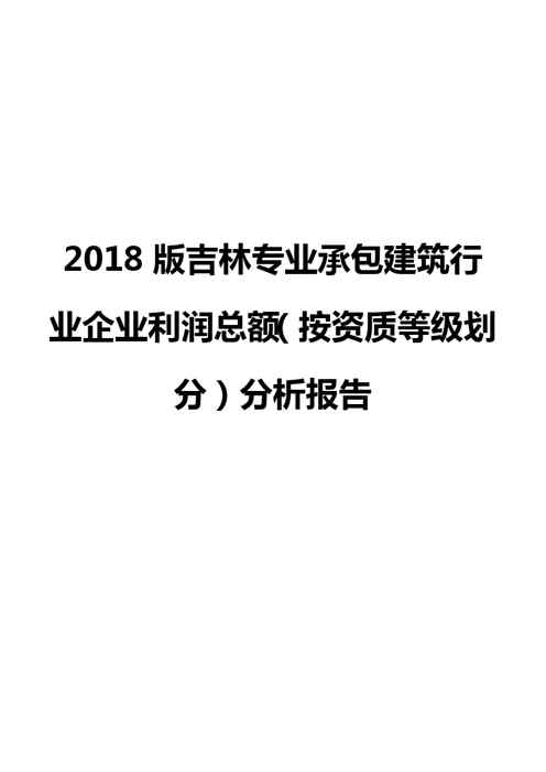 本站资深用户发布了最新的《2018版吉林专业承包建筑行业企业利润总额(按资质等级划分)分析报告》文档,以下内容为预览,详细内容可下载阅读。 声明:本站所有文章,如无特殊说明或标注,均为本站原创发布。任何个人或组织,在未征得本站同意时,禁止复制、盗用、采集、发布本站内容到任何网站、书籍等各类媒体平台。如若本站内容侵犯了原著者的合法权益,可联系我们进行处理。