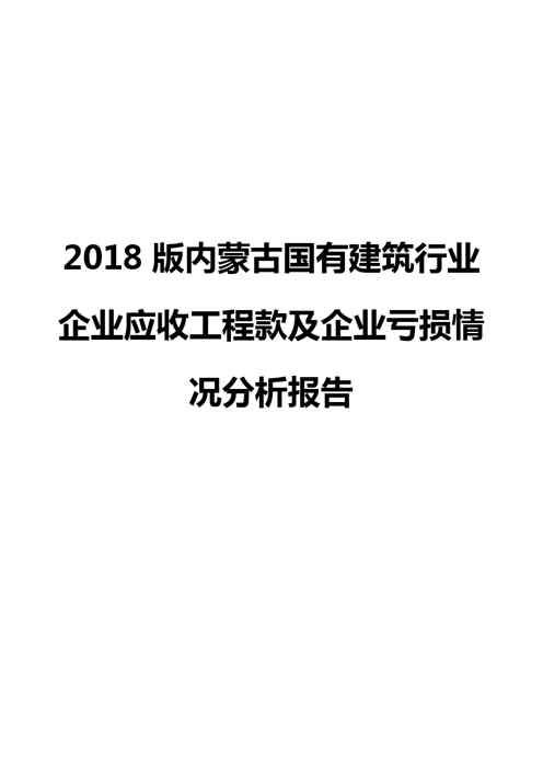本站资深用户发布了最新的《2018版内蒙古国有建筑行业企业应收工程款及企业亏损情况分析报告》文档,以下内容为预览,详细内容可下载阅读。 声明:本站所有文章,如无特殊说明或标注,均为本站原创发布。任何个人或组织,在未征得本站同意时,禁止复制、盗用、采集、发布本站内容到任何网站、书籍等各类媒体平台。如若本站内容侵犯了原著者的合法权益,可联系我们进行处理。