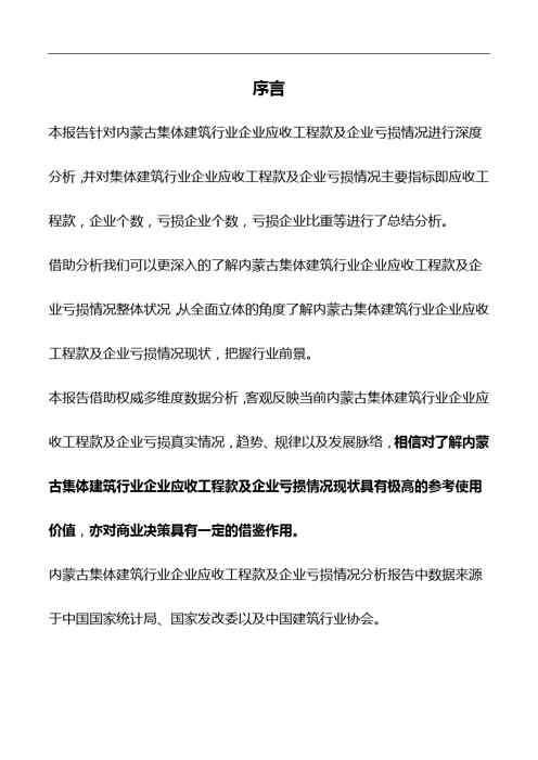 2018版内蒙古集体建筑行业企业应收工程款及企业亏损情况分析报告2018版内蒙古集体建筑行业企业应收工程款及企业亏损情况分析报告2018版内蒙古集体建筑行业企业应收工程款及企业亏损情况分析报告