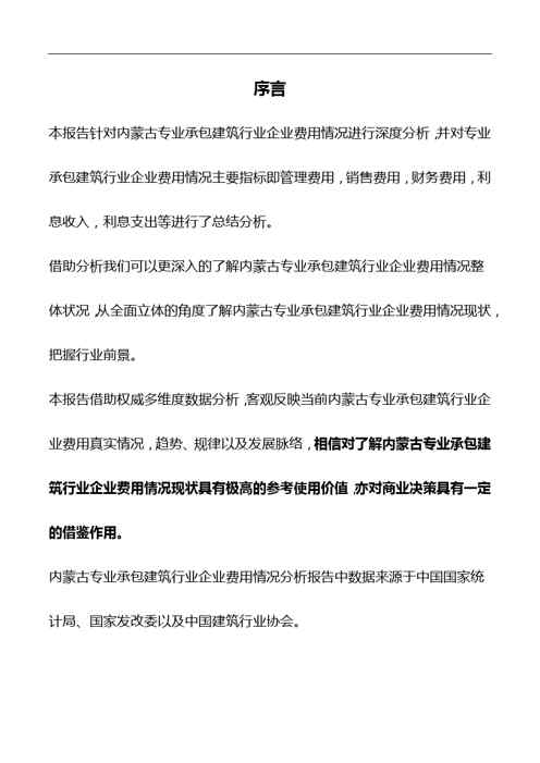 2018版内蒙古专业承包建筑行业企业费用情况分析报告2018版内蒙古专业承包建筑行业企业费用情况分析报告2018版内蒙古专业承包建筑行业企业费用情况分析报告