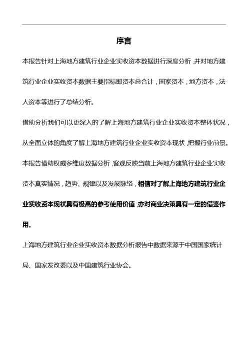 不久前,最新文档《2018版上海地方建筑行业企业实收资本数据分析报告》全文正式在本站发布,感兴趣的用户可以下载阅读。 声明:本站所有文章,如无特殊说明或标注,均为本站原创发布。任何个人或组织,在未征得本站同意时,禁止复制、盗用、采集、发布本站内容到任何网站、书籍等各类媒体平台。如若本站内容侵犯了原著者的合法权益,可联系我们进行处理。