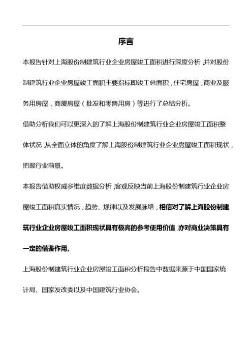 本站正式发布了《2018版上海股份制建筑行业企业房屋竣工面积分析报告》文档,文档详细内容可下载阅读。 声明:本站所有文章,如无特殊说明或标注,均为本站原创发布。任何个人或组织,在未征得本站同意时,禁止复制、盗用、采集、发布本站内容到任何网站、书籍等各类媒体平台。如若本站内容侵犯了原著者的合法权益,可联系我们进行处理。