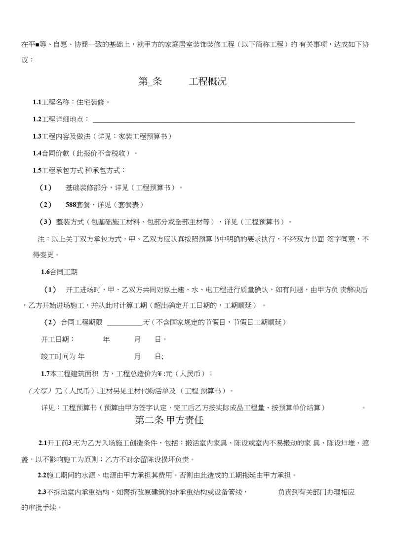 本站资深用户发布了最新的《(家装合同)》文档,以下内容为预览,详细内容可下载阅读。 声明:本站所有文章,如无特殊说明或标注,均为本站原创发布。任何个人或组织,在未征得本站同意时,禁止复制、盗用、采集、发布本站内容到任何网站、书籍等各类媒体平台。如若本站内容侵犯了原著者的合法权益,可联系我们进行处理。
