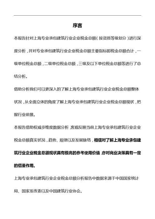 不久前,最新文档《2018版上海专业承包建筑行业企业税金总额(按资质等级划分)分析报告》全文正式在本站发布,感兴趣的用户可以下载阅读。