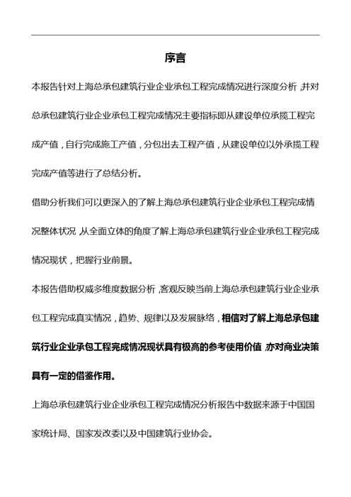 不久前,最新文档《2018版上海总承包建筑行业企业承包工程完成情况分析报告》全文正式在本站发布,感兴趣的用户可以下载阅读。 声明:本站所有文章,如无特殊说明或标注,均为本站原创发布。任何个人或组织,在未征得本站同意时,禁止复制、盗用、采集、发布本站内容到任何网站、书籍等各类媒体平台。如若本站内容侵犯了原著者的合法权益,可联系我们进行处理。