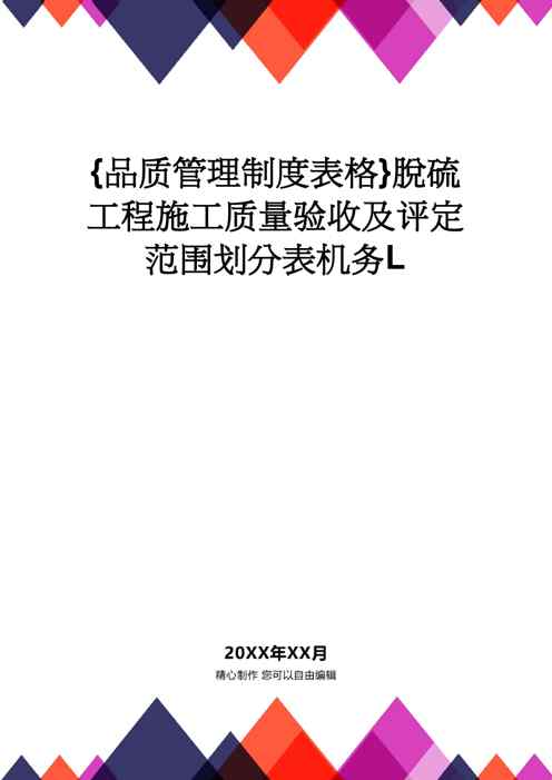 不久前,最新文档《{品质管理制度表格}脱硫工程施工质量验收及评定范围划分表机务L》全文正式在本站发布,感兴趣的用户可以下载阅读。 声明:本站所有文章,如无特殊说明或标注,均为本站原创发布。任何个人或组织,在未征得本站同意时,禁止复制、盗用、采集、发布本站内容到任何网站、书籍等各类媒体平台。如若本站内容侵犯了原著者的合法权益,可联系我们进行处理。