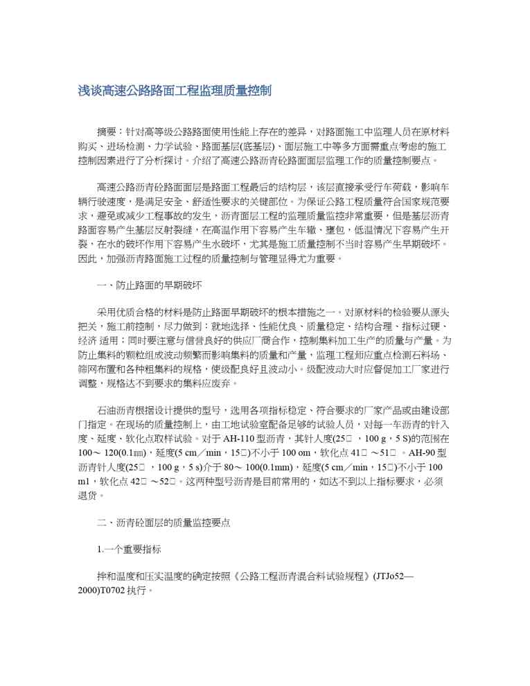 本站资深用户发布了最新的《浅谈高速公路路面工程监理质量控制》文档,以下内容为预览,详细内容可下载阅读。 声明:本站所有文章,如无特殊说明或标注,均为本站原创发布。任何个人或组织,在未征得本站同意时,禁止复制、盗用、采集、发布本站内容到任何网站、书籍等各类媒体平台。如若本站内容侵犯了原著者的合法权益,可联系我们进行处理。