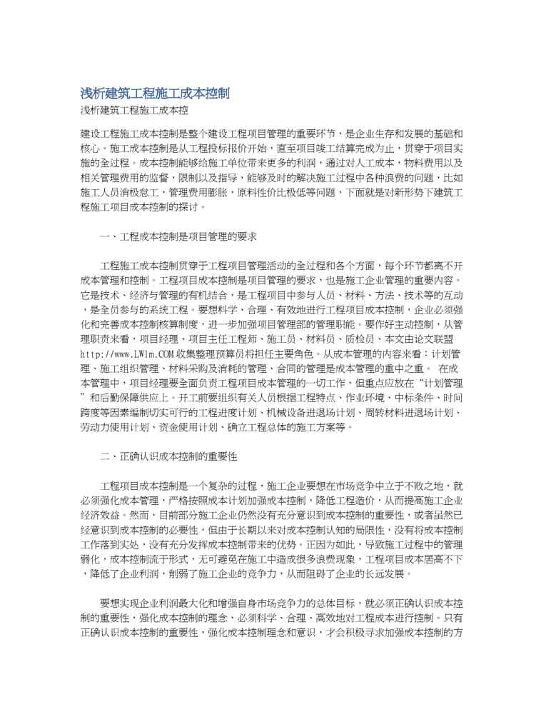 不久前,最新文档《浅析建筑工程施工成本控制》全文正式在本站发布,感兴趣的用户可以下载阅读。 声明:本站所有文章,如无特殊说明或标注,均为本站原创发布。任何个人或组织,在未征得本站同意时,禁止复制、盗用、采集、发布本站内容到任何网站、书籍等各类媒体平台。如若本站内容侵犯了原著者的合法权益,可联系我们进行处理。
