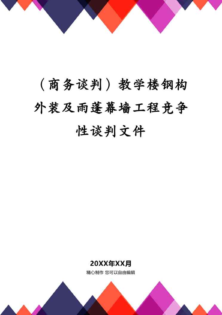 不久前,最新文档《商务谈判教学楼钢构外装及雨蓬幕墙工程竞争性谈判文件》全文正式在本站发布,感兴趣的用户可以下载阅读。 声明:本站所有文章,如无特殊说明或标注,均为本站原创发布。任何个人或组织,在未征得本站同意时,禁止复制、盗用、采集、发布本站内容到任何网站、书籍等各类媒体平台。如若本站内容侵犯了原著者的合法权益,可联系我们进行处理。