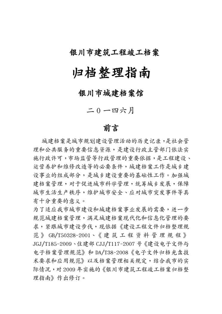 本站资深用户发布了最新的《(档案管理)某市建筑工程竣工档案归档整理指南》文档,以下内容为预览,详细内容可下载阅读。 声明:本站所有文章,如无特殊说明或标注,均为本站原创发布。任何个人或组织,在未征得本站同意时,禁止复制、盗用、采集、发布本站内容到任何网站、书籍等各类媒体平台。如若本站内容侵犯了原著者的合法权益,可联系我们进行处理。