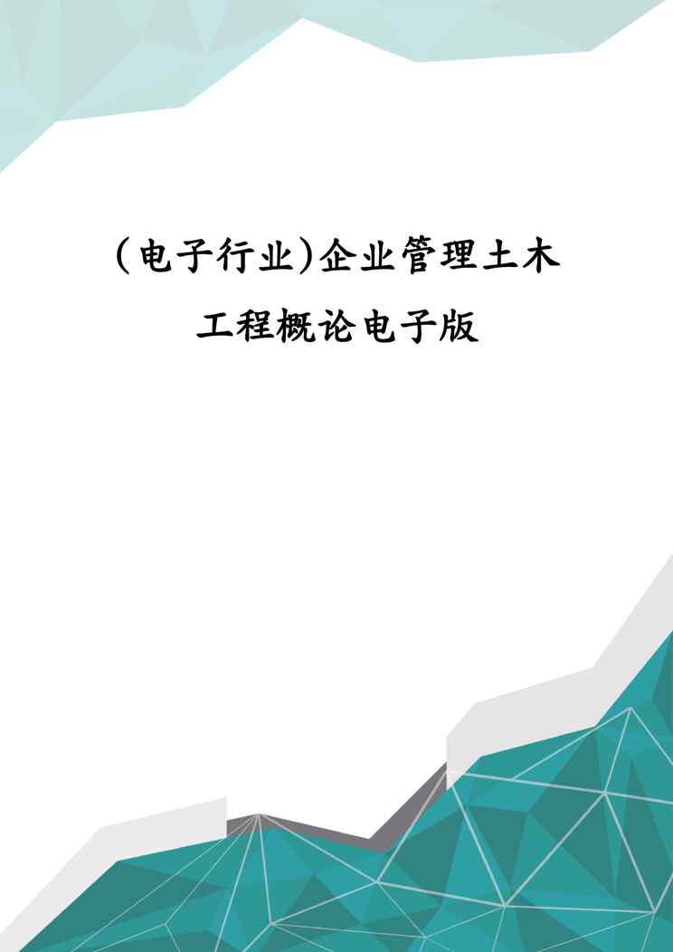 本站资深用户发布了最新的《(电子行业)企业管理土木工程概论电子版》文档,以下内容为预览,详细内容可下载阅读。 声明:本站所有文章,如无特殊说明或标注,均为本站原创发布。任何个人或组织,在未征得本站同意时,禁止复制、盗用、采集、发布本站内容到任何网站、书籍等各类媒体平台。如若本站内容侵犯了原著者的合法权益,可联系我们进行处理。