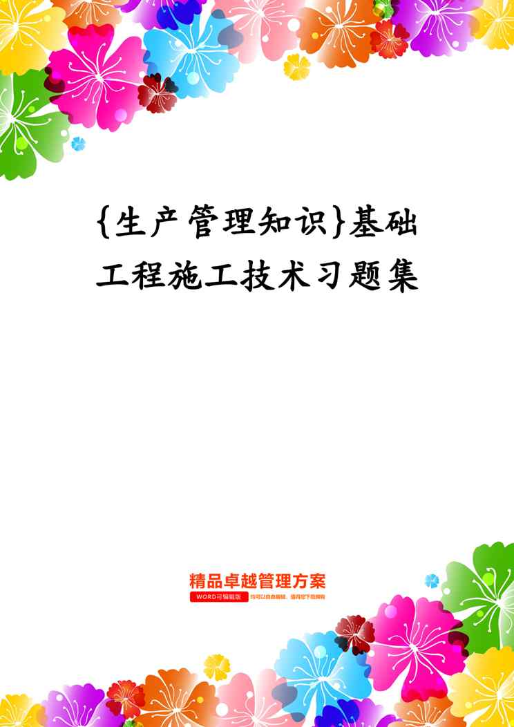本站资深用户发布了最新的《生产管理知识基础工程施工技术习题集》文档,以下内容为预览,详细内容可下载阅读。 声明:本站所有文章,如无特殊说明或标注,均为本站原创发布。任何个人或组织,在未征得本站同意时,禁止复制、盗用、采集、发布本站内容到任何网站、书籍等各类媒体平台。如若本站内容侵犯了原著者的合法权益,可联系我们进行处理。