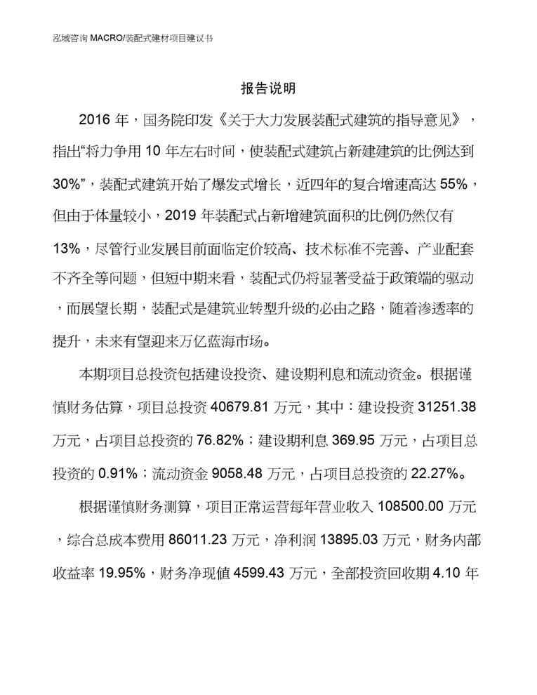 本站正式发布了《唐山装配式建材项目建议书(参考模板)》文档,文档详细内容可下载阅读。 声明:本站所有文章,如无特殊说明或标注,均为本站原创发布。任何个人或组织,在未征得本站同意时,禁止复制、盗用、采集、发布本站内容到任何网站、书籍等各类媒体平台。如若本站内容侵犯了原著者的合法权益,可联系我们进行处理。