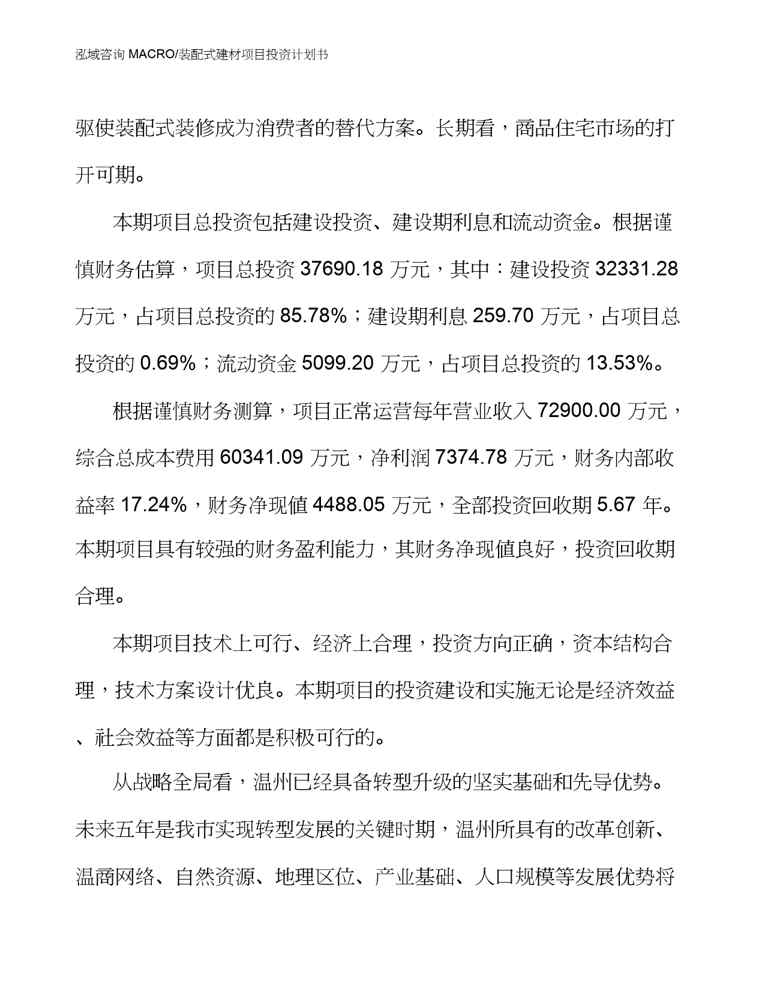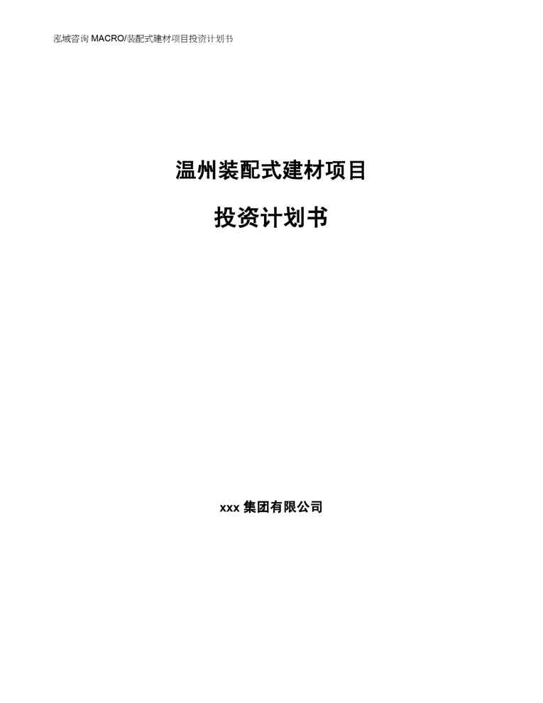 本站资深用户发布了最新的《温州装配式建材项目投资计划书参考模板》文档,以下内容为预览,详细内容可下载阅读。 声明:本站所有文章,如无特殊说明或标注,均为本站原创发布。任何个人或组织,在未征得本站同意时,禁止复制、盗用、采集、发布本站内容到任何网站、书籍等各类媒体平台。如若本站内容侵犯了原著者的合法权益,可联系我们进行处理。