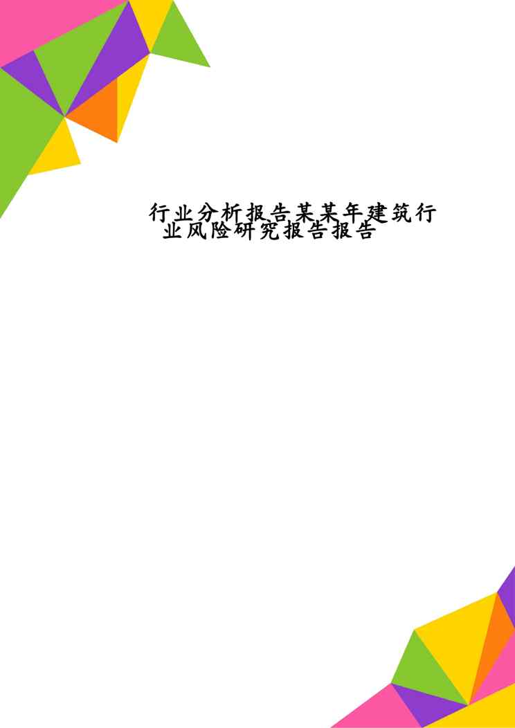 本站正式发布了《行业分析报告某某年建筑行业风险研究报告报告》文档,文档详细内容可下载阅读。 声明:本站所有文章,如无特殊说明或标注,均为本站原创发布。任何个人或组织,在未征得本站同意时,禁止复制、盗用、采集、发布本站内容到任何网站、书籍等各类媒体平台。如若本站内容侵犯了原著者的合法权益,可联系我们进行处理。