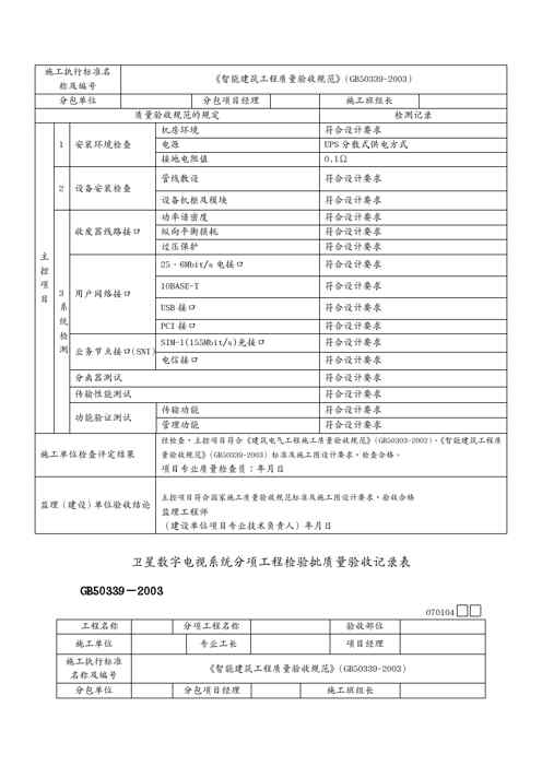 本站资深用户发布了最新的《{品质管理制度表格}智能建筑工程检验批质量验收记录表》文档,以下内容为预览,详细内容可下载阅读。 声明:本站所有文章,如无特殊说明或标注,均为本站原创发布。任何个人或组织,在未征得本站同意时,禁止复制、盗用、采集、发布本站内容到任何网站、书籍等各类媒体平台。如若本站内容侵犯了原著者的合法权益,可联系我们进行处理。