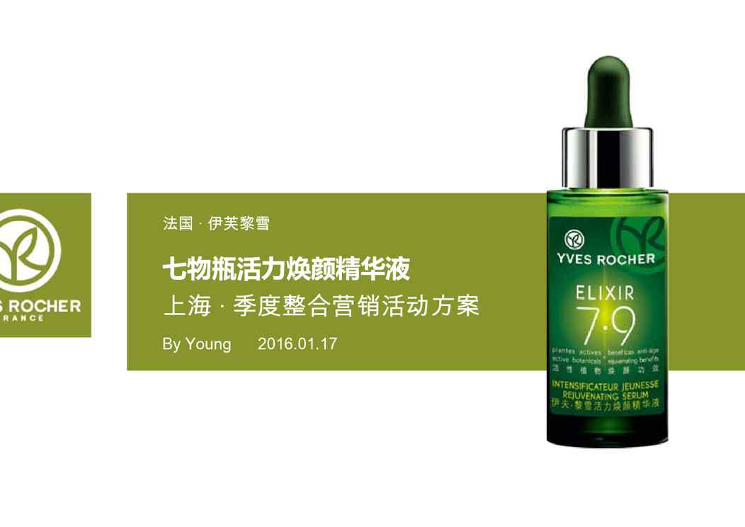 不久前,最新文档《20160117法国七物瓶季度营销整合推广方案【测试题】-隗洋 (2)》全文正式在本站发布,感兴趣的用户可以下载阅读。 声明:本站所有文章,如无特殊说明或标注,均为本站原创发布。任何个人或组织,在未征得本站同意时,禁止复制、盗用、采集、发布本站内容到任何网站、书籍等各类媒体平台。如若本站内容侵犯了原著者的合法权益,可联系我们进行处理。