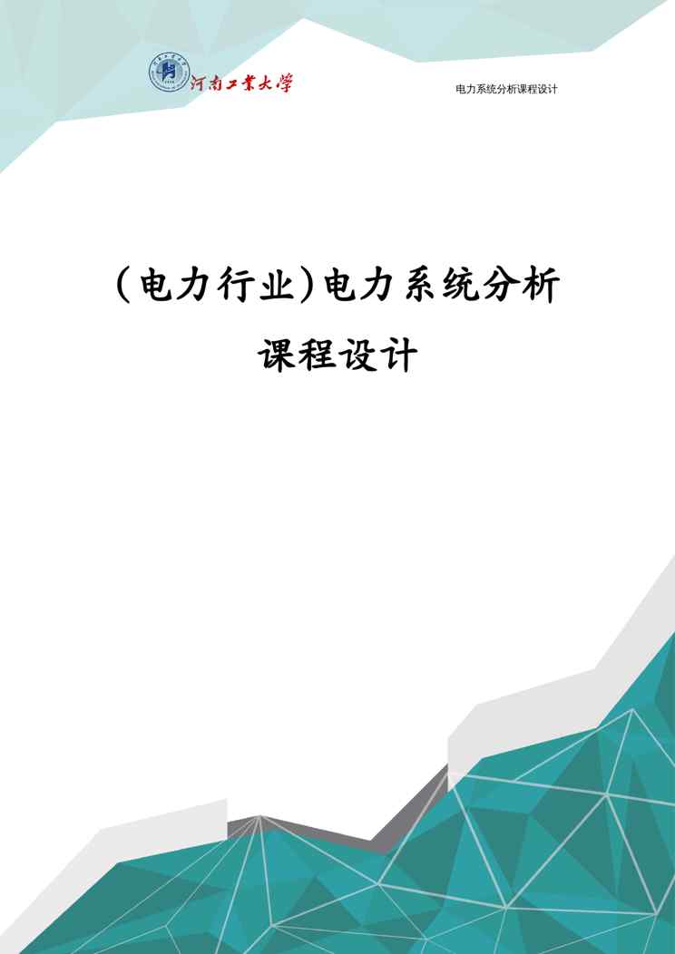本站资深用户发布了最新的《(电力行业)电力系统分析课程设计》文档,以下内容为预览,详细内容可下载阅读。 声明:本站所有文章,如无特殊说明或标注,均为本站原创发布。任何个人或组织,在未征得本站同意时,禁止复制、盗用、采集、发布本站内容到任何网站、书籍等各类媒体平台。如若本站内容侵犯了原著者的合法权益,可联系我们进行处理。