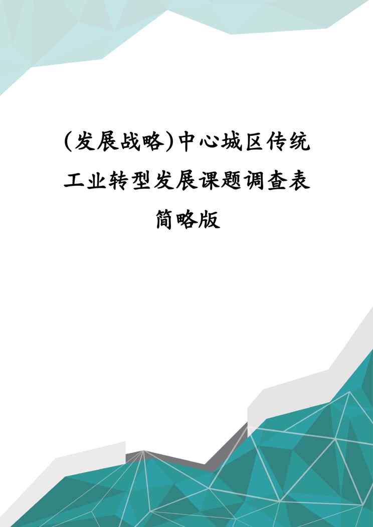 本站资深用户发布了最新的《(发展战略)中心城区传统工业转型发展课题调查表简略版》文档,以下内容为预览,详细内容可下载阅读。 声明:本站所有文章,如无特殊说明或标注,均为本站原创发布。任何个人或组织,在未征得本站同意时,禁止复制、盗用、采集、发布本站内容到任何网站、书籍等各类媒体平台。如若本站内容侵犯了原著者的合法权益,可联系我们进行处理。