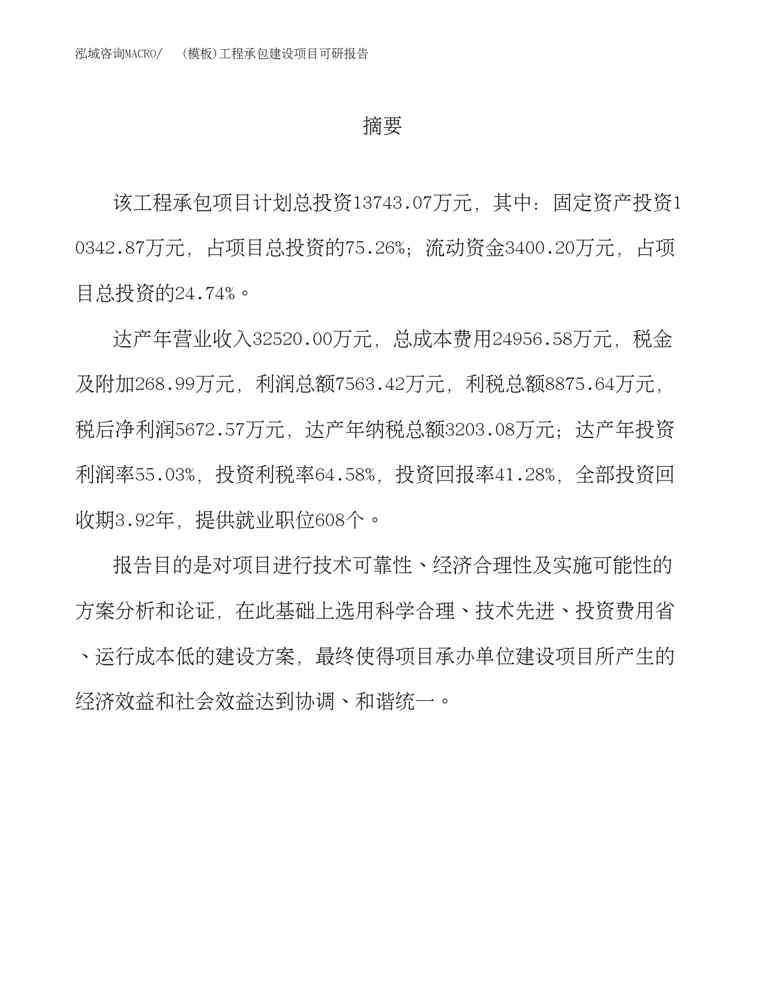 不久前,最新文档《(模板)工程承包建设项目可研报告》全文正式在本站发布,感兴趣的用户可以下载阅读。 声明:本站所有文章,如无特殊说明或标注,均为本站原创发布。任何个人或组织,在未征得本站同意时,禁止复制、盗用、采集、发布本站内容到任何网站、书籍等各类媒体平台。如若本站内容侵犯了原著者的合法权益,可联系我们进行处理。