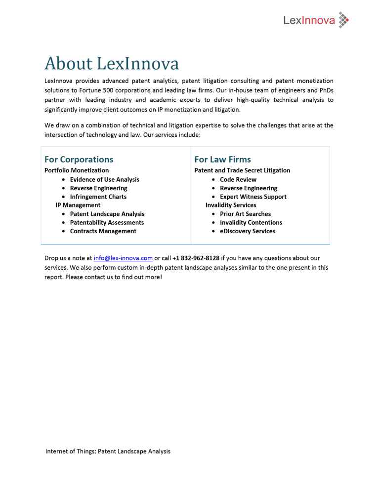 本站资深用户发布了最新的《LexInnova:物联网分析报告:专利态势分析》文档,以下内容为预览,详细内容可下载阅读。 声明:本站所有文章,如无特殊说明或标注,均为本站原创发布。任何个人或组织,在未征得本站同意时,禁止复制、盗用、采集、发布本站内容到任何网站、书籍等各类媒体平台。如若本站内容侵犯了原著者的合法权益,可联系我们进行处理。