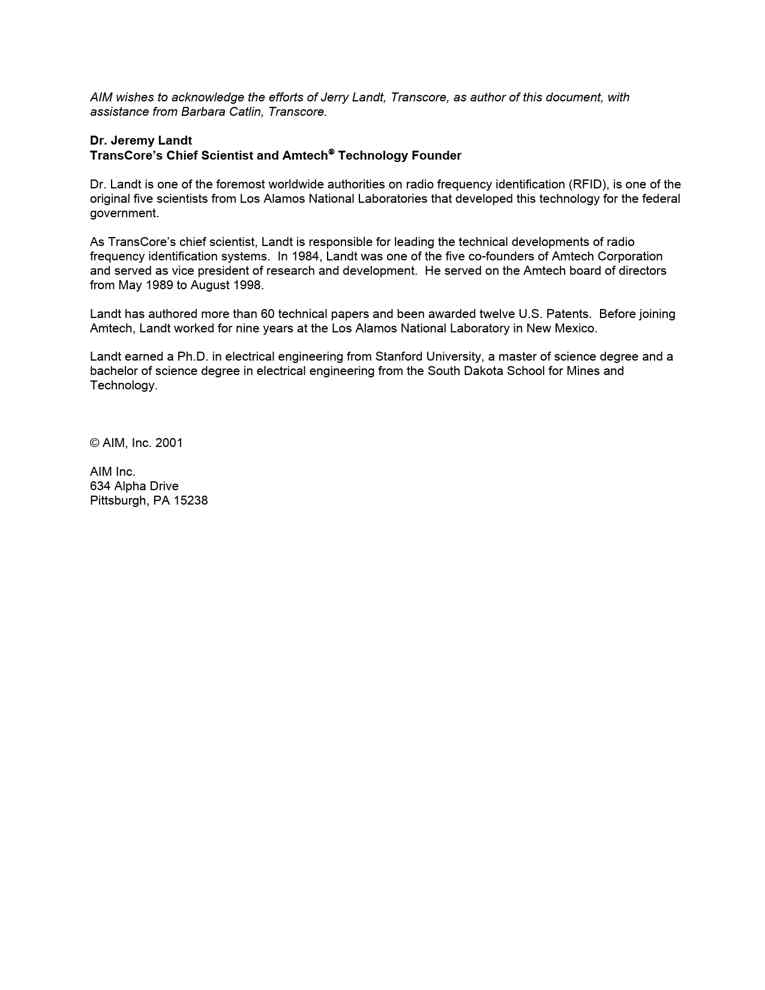 本站资深用户发布了最新的《Shrouds of Time The history of RFID》文档,以下内容为预览,详细内容可下载阅读。 声明:本站所有文章,如无特殊说明或标注,均为本站原创发布。任何个人或组织,在未征得本站同意时,禁止复制、盗用、采集、发布本站内容到任何网站、书籍等各类媒体平台。如若本站内容侵犯了原著者的合法权益,可联系我们进行处理。