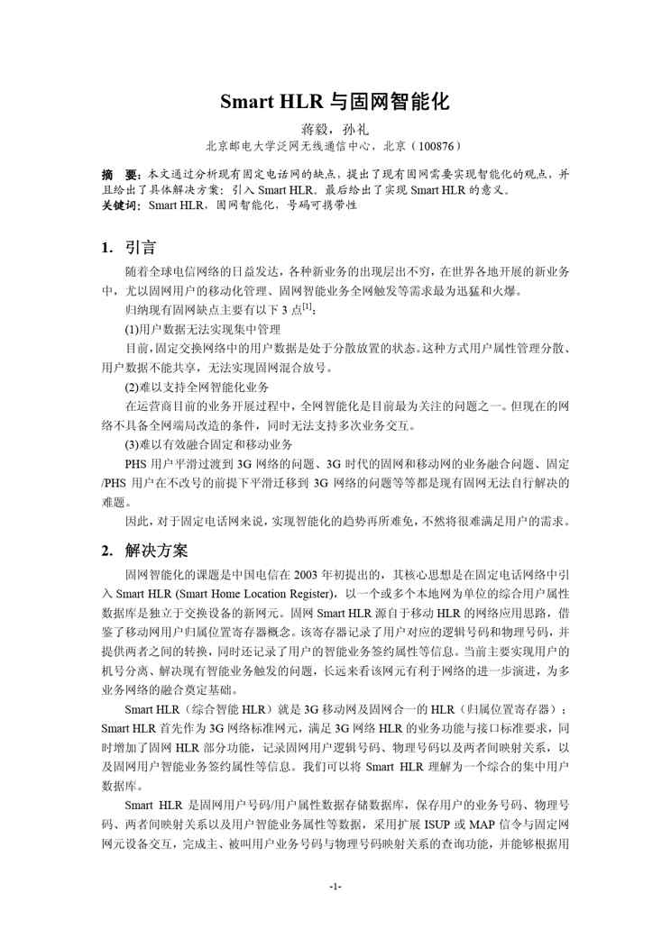 本站资深用户发布了最新的《SmartHLR与固网智能化》文档,以下内容为预览,详细内容可下载阅读。 声明:本站所有文章,如无特殊说明或标注,均为本站原创发布。任何个人或组织,在未征得本站同意时,禁止复制、盗用、采集、发布本站内容到任何网站、书籍等各类媒体平台。如若本站内容侵犯了原著者的合法权益,可联系我们进行处理。