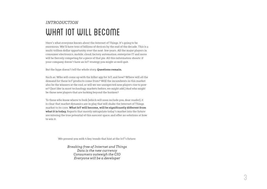 本站资深用户发布了最新的《VisionMobile:2015年全球物联网消费趋势分析报告》文档,以下内容为预览,详细内容可下载阅读。 声明:本站所有文章,如无特殊说明或标注,均为本站原创发布。任何个人或组织,在未征得本站同意时,禁止复制、盗用、采集、发布本站内容到任何网站、书籍等各类媒体平台。如若本站内容侵犯了原著者的合法权益,可联系我们进行处理。