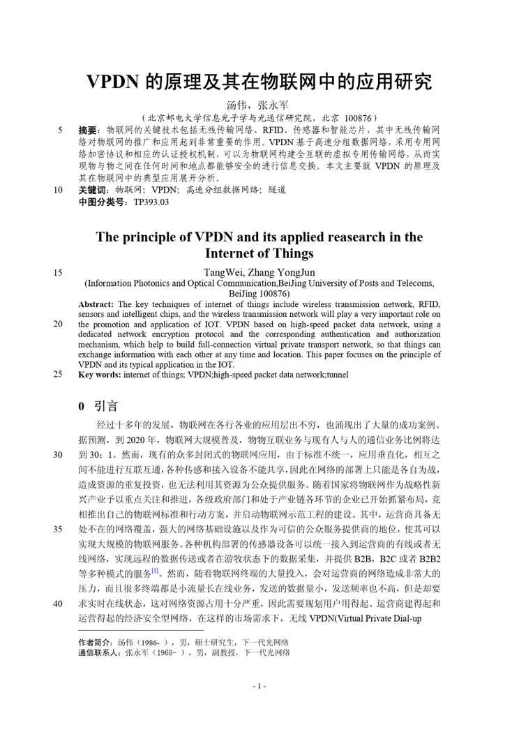 本站资深用户发布了最新的《VPDN的原理及其在物联网中的应用研究》文档,以下内容为预览,详细内容可下载阅读。 声明:本站所有文章,如无特殊说明或标注,均为本站原创发布。任何个人或组织,在未征得本站同意时,禁止复制、盗用、采集、发布本站内容到任何网站、书籍等各类媒体平台。如若本站内容侵犯了原著者的合法权益,可联系我们进行处理。