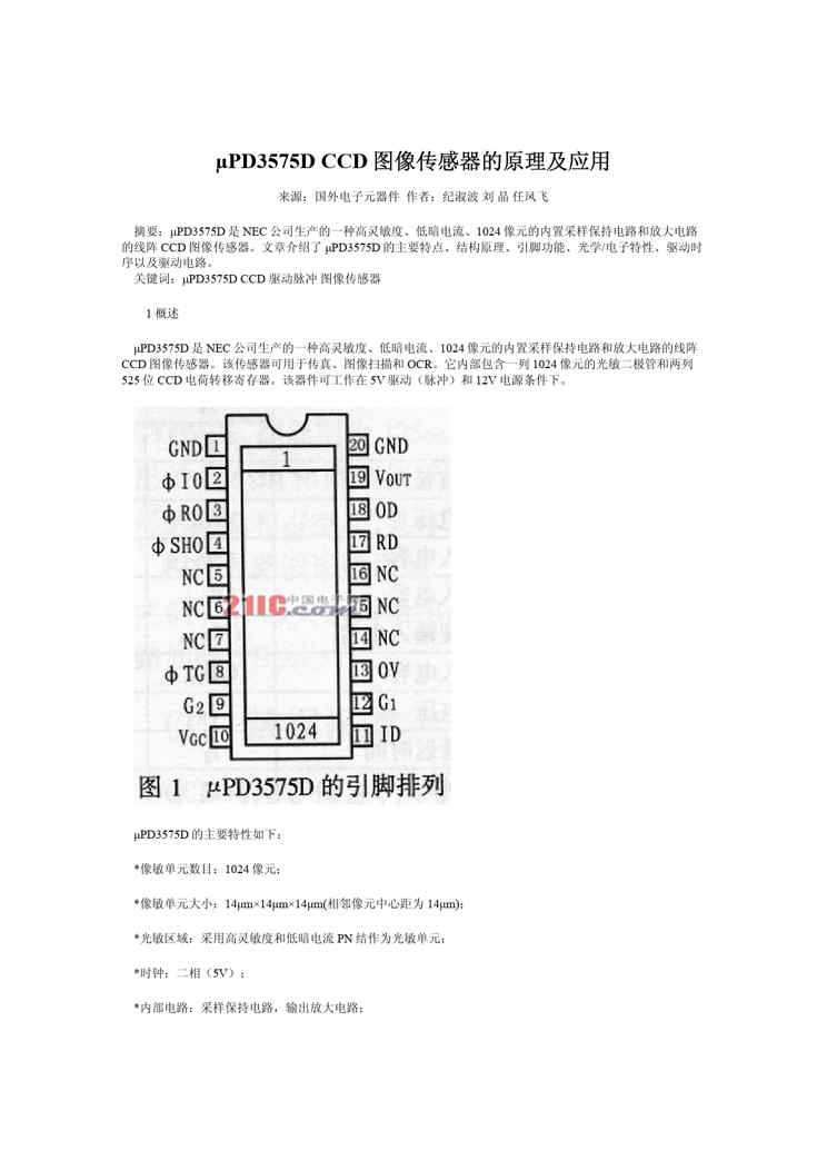 本站资深用户发布了最新的《μPD3575D CCD 图像传感器的原理及应用》文档,以下内容为预览,详细内容可下载阅读。 声明:本站所有文章,如无特殊说明或标注,均为本站原创发布。任何个人或组织,在未征得本站同意时,禁止复制、盗用、采集、发布本站内容到任何网站、书籍等各类媒体平台。如若本站内容侵犯了原著者的合法权益,可联系我们进行处理。