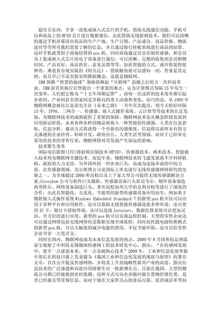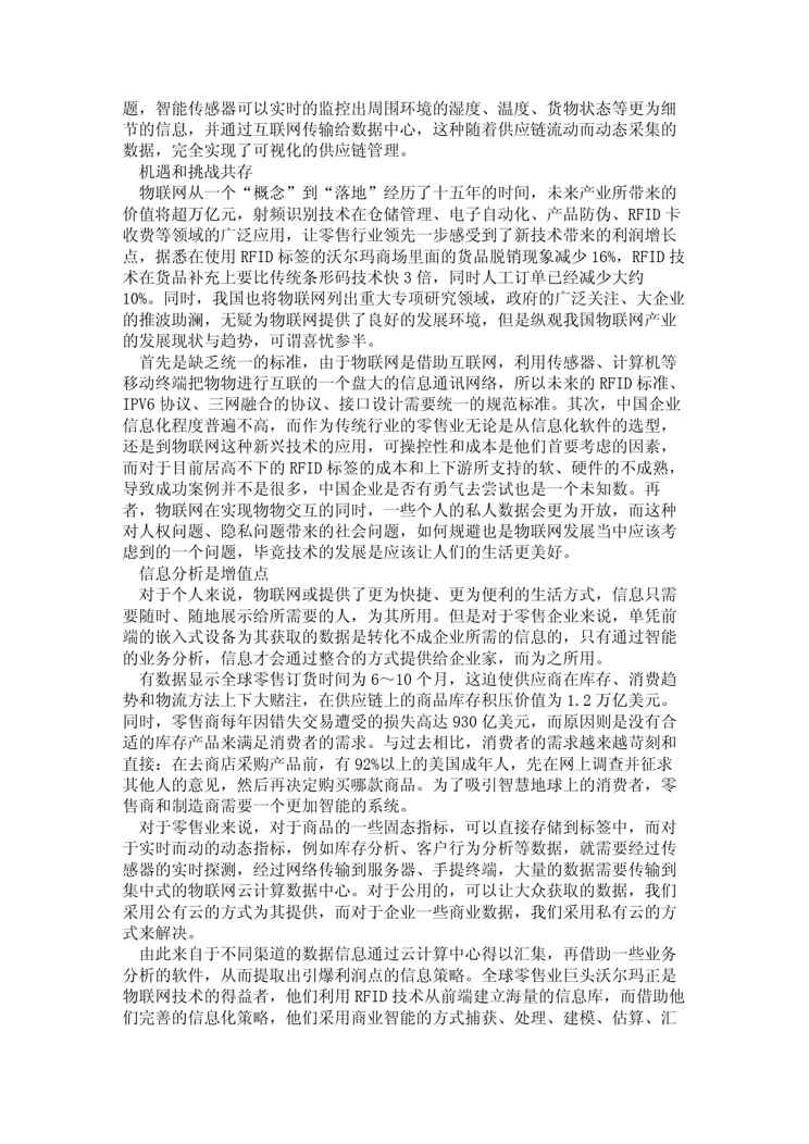 本站资深用户发布了最新的《案例分析:物联网影响零售业物流供应链分析》文档,以下内容为预览,详细内容可下载阅读。 声明:本站所有文章,如无特殊说明或标注,均为本站原创发布。任何个人或组织,在未征得本站同意时,禁止复制、盗用、采集、发布本站内容到任何网站、书籍等各类媒体平台。如若本站内容侵犯了原著者的合法权益,可联系我们进行处理。