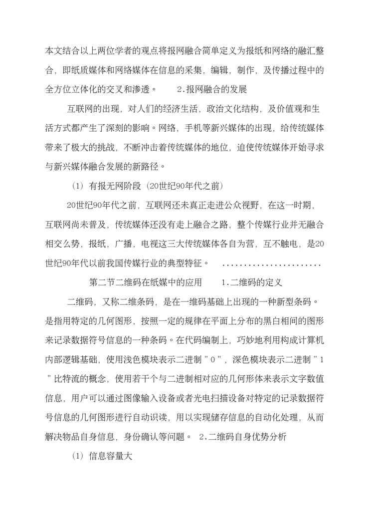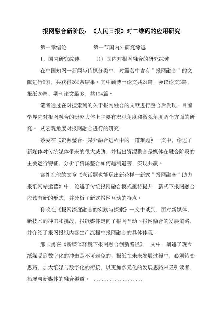 本站资深用户发布了最新的《报网融合新阶段:《人民日报》对二维码的应用研究》文档,以下内容为预览,详细内容可下载阅读。 声明:本站所有文章,如无特殊说明或标注,均为本站原创发布。任何个人或组织,在未征得本站同意时,禁止复制、盗用、采集、发布本站内容到任何网站、书籍等各类媒体平台。如若本站内容侵犯了原著者的合法权益,可联系我们进行处理。