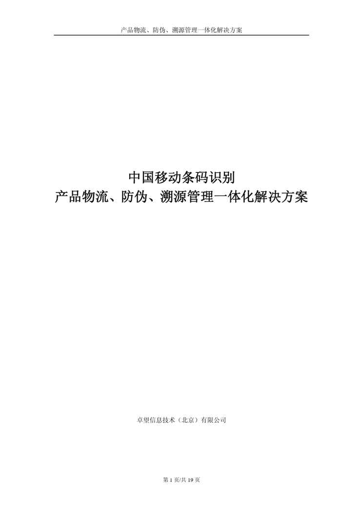 产品物流、防伪、溯源管理一体化解决方案产品物流、防伪、溯源管理一体化解决方案产品物流、防伪、溯源管理一体化解决方案