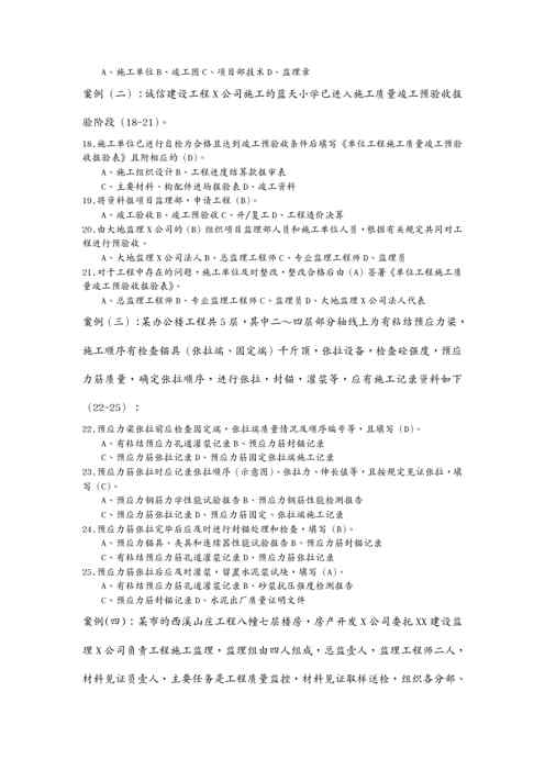不久前,最新文档《(建筑工程管理)工程资料习题库答案》全文正式在本站发布,感兴趣的用户可以下载阅读。 声明:本站所有文章,如无特殊说明或标注,均为本站原创发布。任何个人或组织,在未征得本站同意时,禁止复制、盗用、采集、发布本站内容到任何网站、书籍等各类媒体平台。如若本站内容侵犯了原著者的合法权益,可联系我们进行处理。