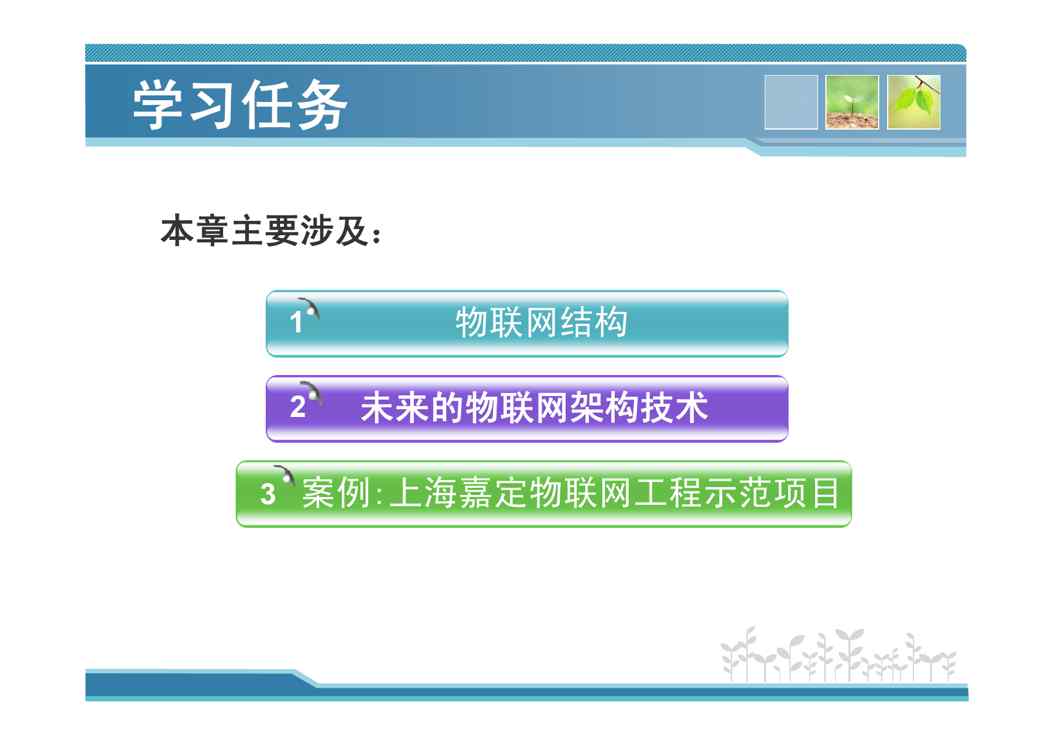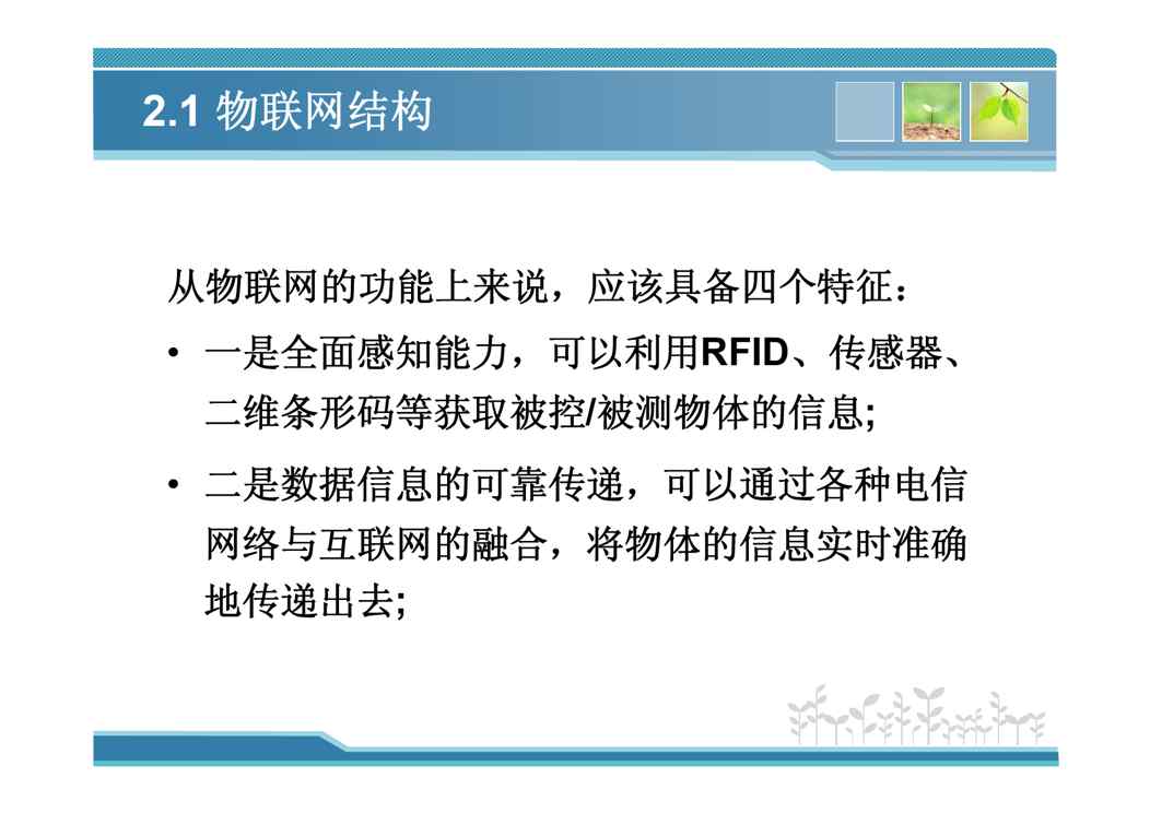 本站资深用户发布了最新的《第2章_物联网架构技术》文档,以下内容为预览,详细内容可下载阅读。 声明:本站所有文章,如无特殊说明或标注,均为本站原创发布。任何个人或组织,在未征得本站同意时,禁止复制、盗用、采集、发布本站内容到任何网站、书籍等各类媒体平台。如若本站内容侵犯了原著者的合法权益,可联系我们进行处理。