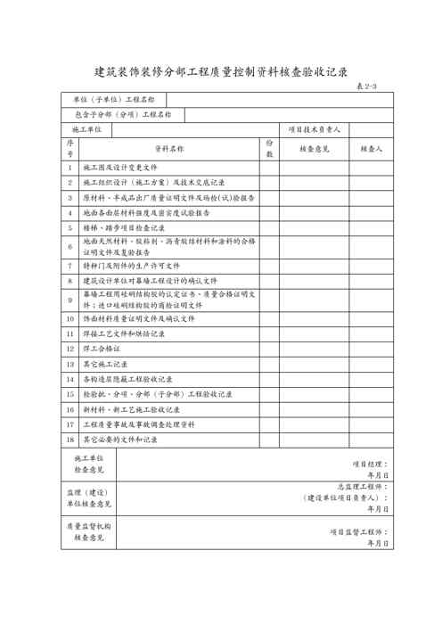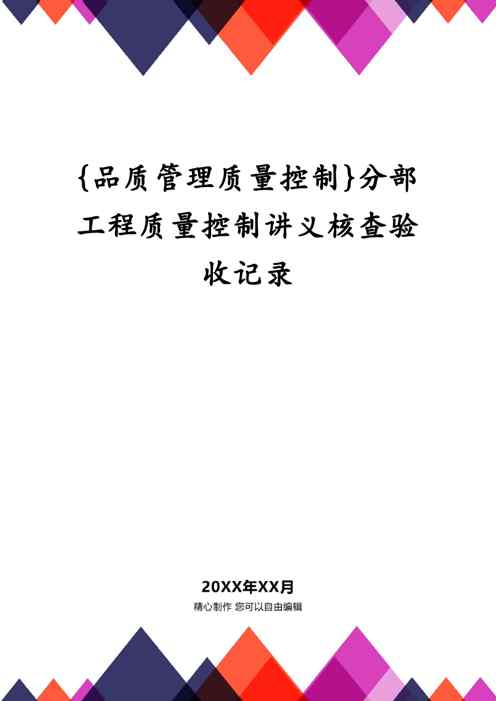 本站资深用户发布了最新的《{品质管理质量控制}分部工程质量控制讲义核查验收记录》文档,以下内容为预览,详细内容可下载阅读。 声明:本站所有文章,如无特殊说明或标注,均为本站原创发布。任何个人或组织,在未征得本站同意时,禁止复制、盗用、采集、发布本站内容到任何网站、书籍等各类媒体平台。如若本站内容侵犯了原著者的合法权益,可联系我们进行处理。