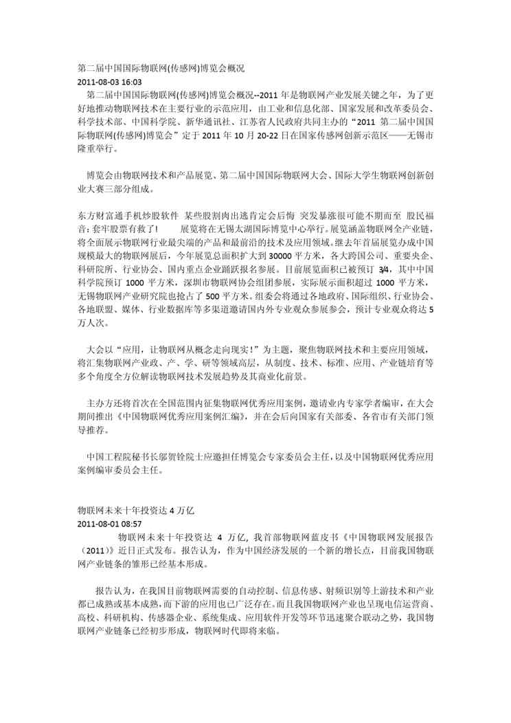 本站资深用户发布了最新的《第二届中国国际物联网》文档,以下内容为预览,详细内容可下载阅读。 声明:本站所有文章,如无特殊说明或标注,均为本站原创发布。任何个人或组织,在未征得本站同意时,禁止复制、盗用、采集、发布本站内容到任何网站、书籍等各类媒体平台。如若本站内容侵犯了原著者的合法权益,可联系我们进行处理。