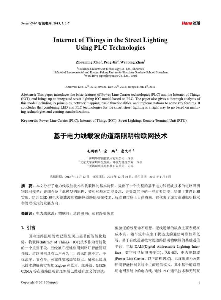本站正式发布了《基于电力线载波的道路照明物联网技术》文档,文档详细内容可下载阅读。 声明:本站所有文章,如无特殊说明或标注,均为本站原创发布。任何个人或组织,在未征得本站同意时,禁止复制、盗用、采集、发布本站内容到任何网站、书籍等各类媒体平台。如若本站内容侵犯了原著者的合法权益,可联系我们进行处理。