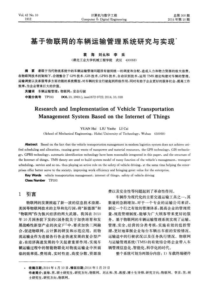 不久前,最新文档《基于物联网的车辆运输管理系统研究与实现磁》全文正式在本站发布,感兴趣的用户可以下载阅读。 声明:本站所有文章,如无特殊说明或标注,均为本站原创发布。任何个人或组织,在未征得本站同意时,禁止复制、盗用、采集、发布本站内容到任何网站、书籍等各类媒体平台。如若本站内容侵犯了原著者的合法权益,可联系我们进行处理。