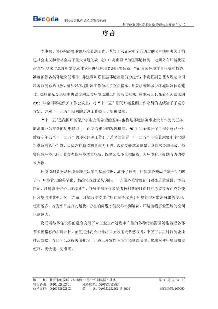 不久前,最新文档《基于物联网的环保监测管理信息系统方案》全文正式在本站发布,感兴趣的用户可以下载阅读。 声明:本站所有文章,如无特殊说明或标注,均为本站原创发布。任何个人或组织,在未征得本站同意时,禁止复制、盗用、采集、发布本站内容到任何网站、书籍等各类媒体平台。如若本站内容侵犯了原著者的合法权益,可联系我们进行处理。