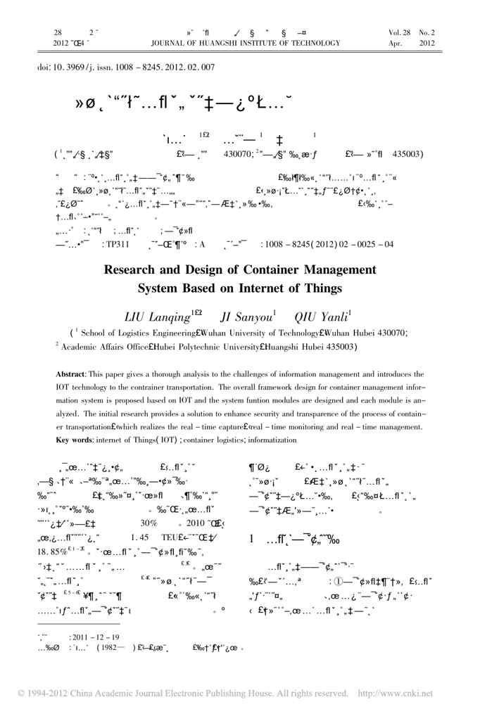 本站正式发布了《基于物联网的集装箱管理系统研究与设计》文档,文档详细内容可下载阅读。 声明:本站所有文章,如无特殊说明或标注,均为本站原创发布。任何个人或组织,在未征得本站同意时,禁止复制、盗用、采集、发布本站内容到任何网站、书籍等各类媒体平台。如若本站内容侵犯了原著者的合法权益,可联系我们进行处理。