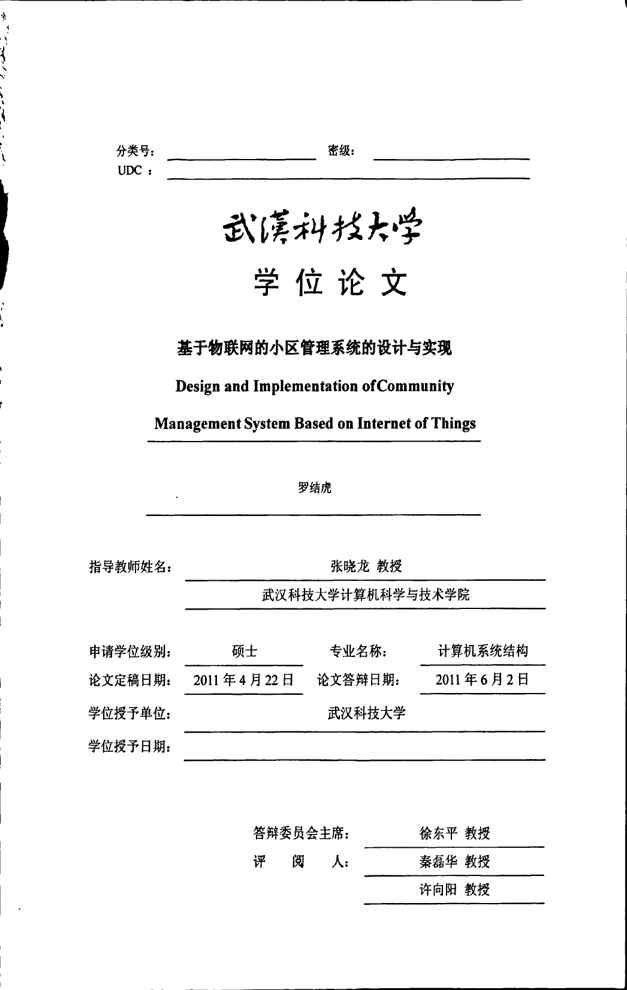 本站正式发布了《基于物联网的小区管理系统的设计与实现》文档,文档详细内容可下载阅读。 声明:本站所有文章,如无特殊说明或标注,均为本站原创发布。任何个人或组织,在未征得本站同意时,禁止复制、盗用、采集、发布本站内容到任何网站、书籍等各类媒体平台。如若本站内容侵犯了原著者的合法权益,可联系我们进行处理。