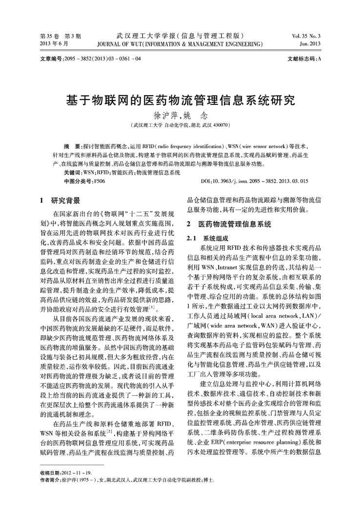 不久前,最新文档《基于物联网的医药物流管理信息系统研究》全文正式在本站发布,感兴趣的用户可以下载阅读。 声明:本站所有文章,如无特殊说明或标注,均为本站原创发布。任何个人或组织,在未征得本站同意时,禁止复制、盗用、采集、发布本站内容到任何网站、书籍等各类媒体平台。如若本站内容侵犯了原著者的合法权益,可联系我们进行处理。
